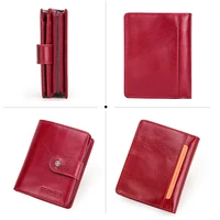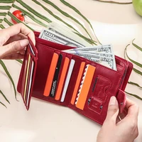 Genuine Leather Wallets Women Men Wallet Short Small RFID Blocking Card Holder Wallets Ladies Red Coin Purse