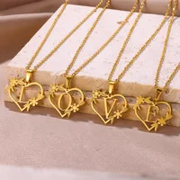 Gold Color Dainty Flower Initials Necklace Women Girl Stainless Steel Heart Letter Choker Necklace Best Gifts Alphabet Jewelry