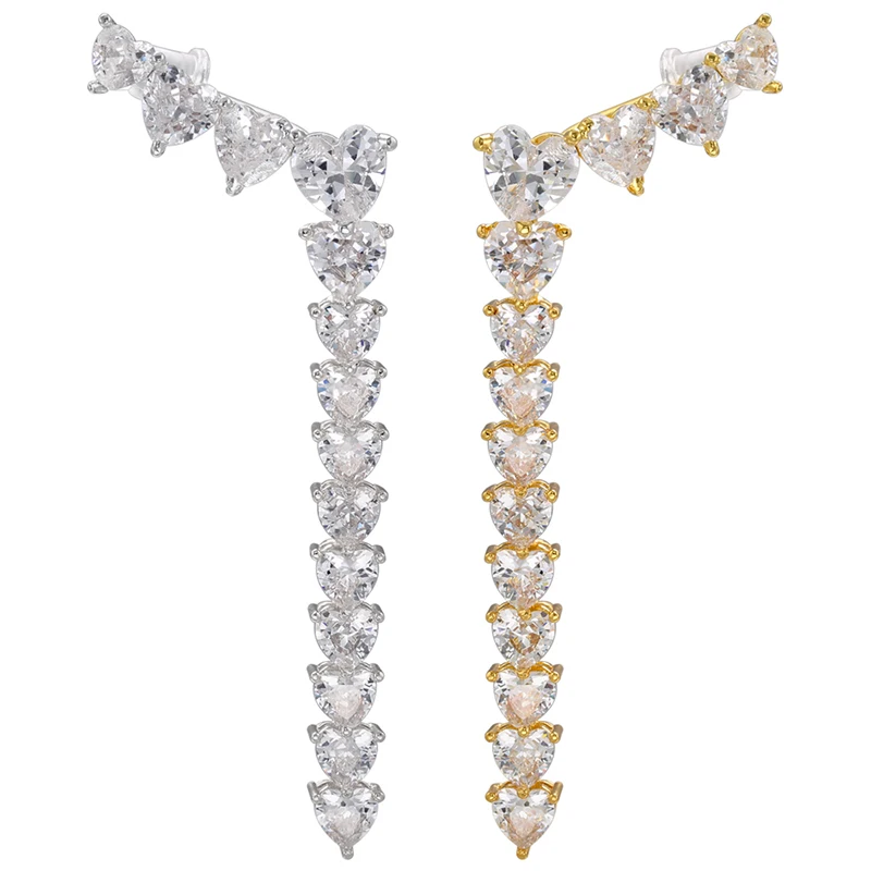 Gold color heart Dangle Earrings Tassel Stud Earrings women Climber ear cuffs Fashion Jewelry