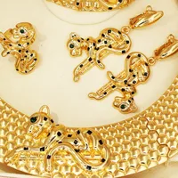 Gold Plated Big Jewelry Set Animal Leopard Choker Necklace Bracelet Earring Ring Set Wedding Party Gift