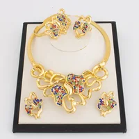 Gold Plated Jewelry Set Women Luxurious Necklace Earrings Bracelet Ring 4pcs Bride Wedding Party Jewelry Set Gift