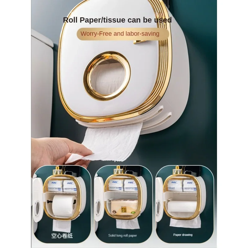 Punch Free Toilet Paper Holder Box Waterproof Tissue Storage Box Bathroom Shelf Wall Mounted Kitchen Bathroom Storage Rack