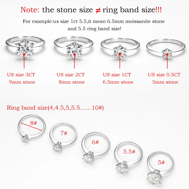Main stone:0.5/1/2/3/5moissanite