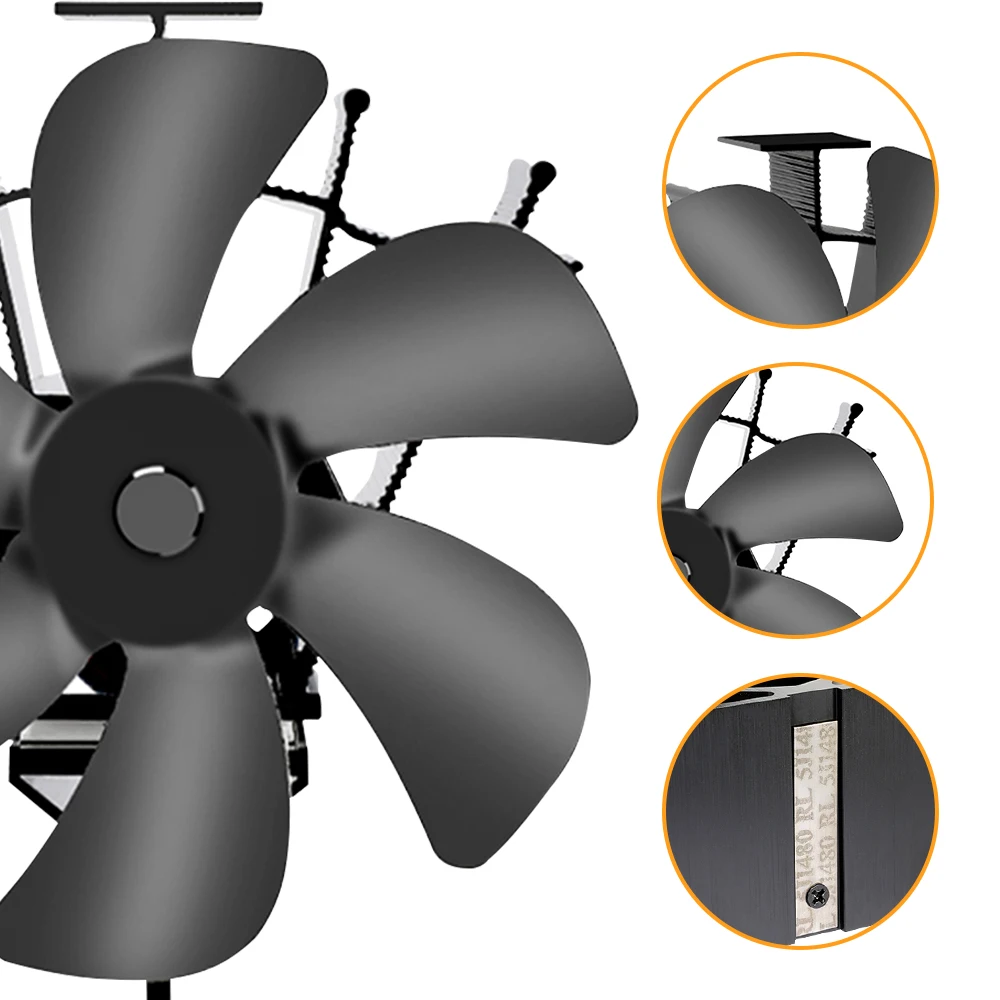 Heat Powered Stove Fan Eco Quiet Black 6 Blades Log Wood Burner Fireplace Fan Winter Warmer Home Efficient Heat Distribution