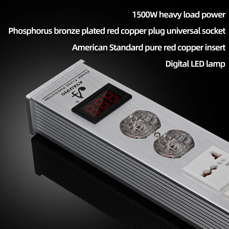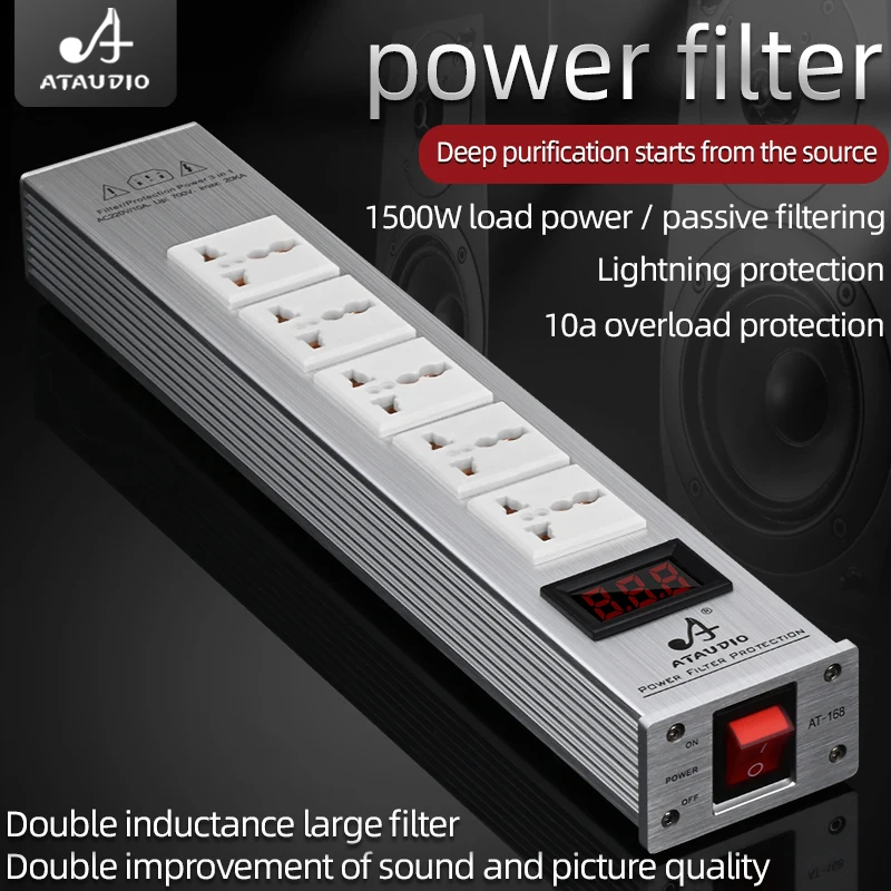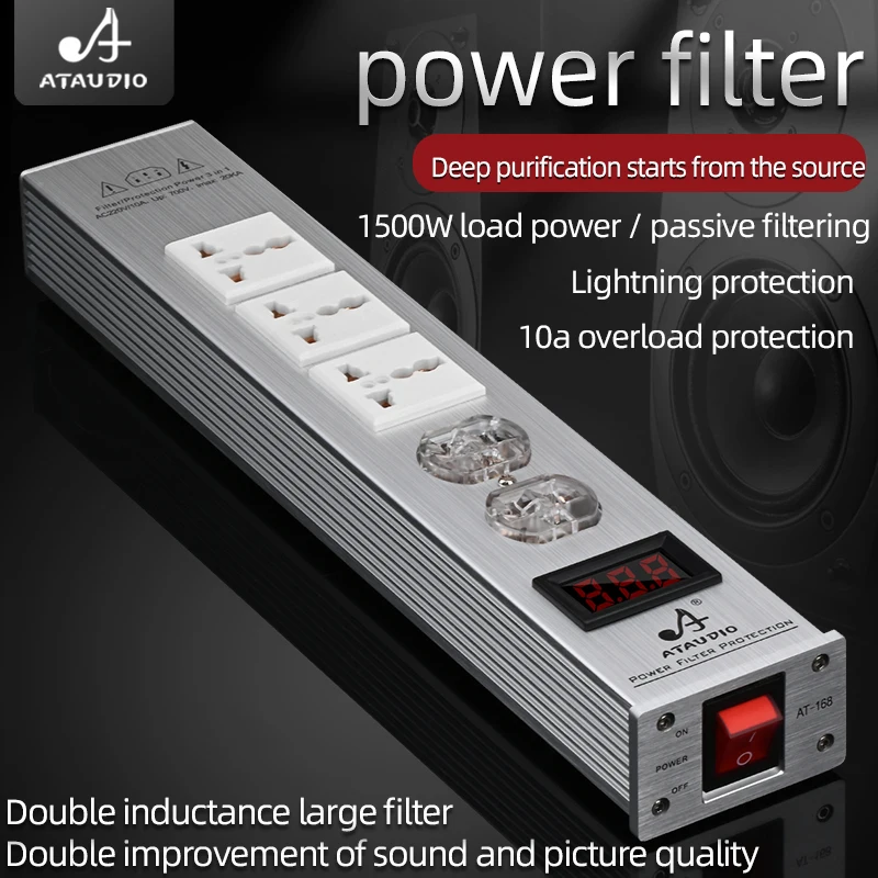 HIFI Audio Power Filter Noise AC Power Filter Power 1500W, 110V-250V Purifier Surge Protection with EU Universal Outlets