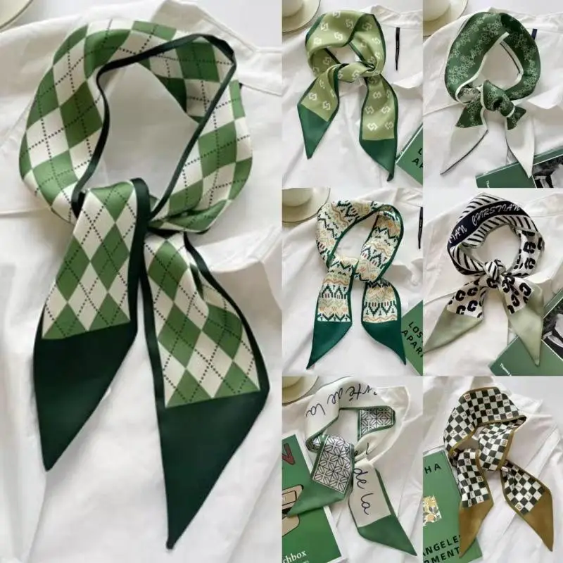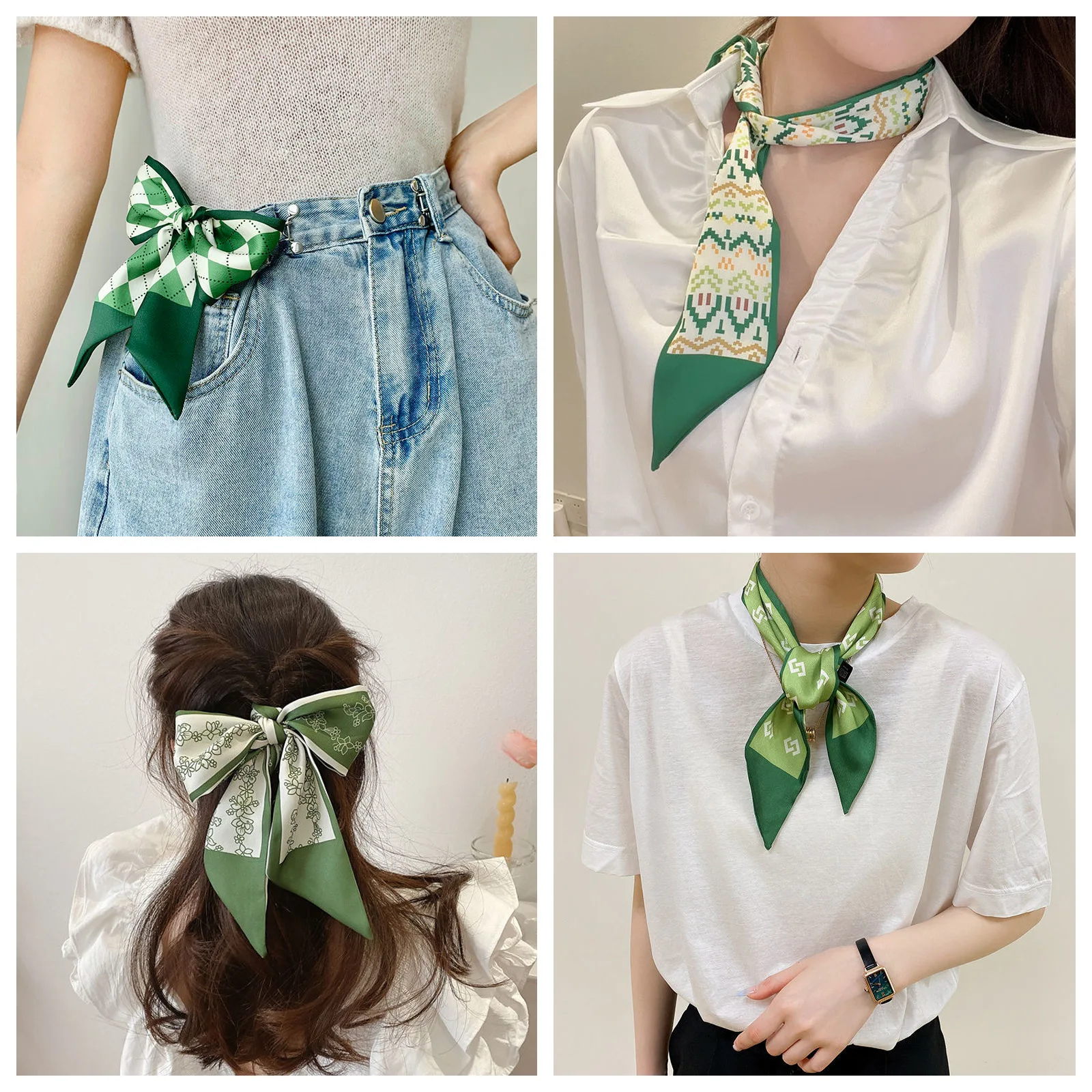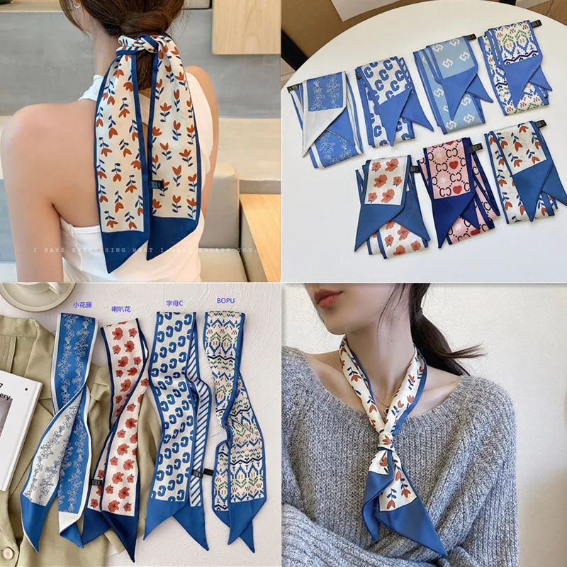 Fashion Print Hair Ribbons Scarf Women Silk Scrunchies Hair Bands Female Neck Tie Skinny Bag Scarfs Bandana Accessories Headware