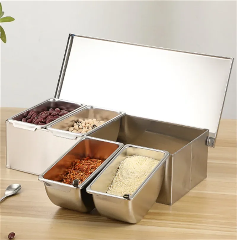 High quality 304 Stainless Steel Seasoning Box Hotel Restaurant chef Seasoning Box With Lid Storage Box Household Seasoning Tank