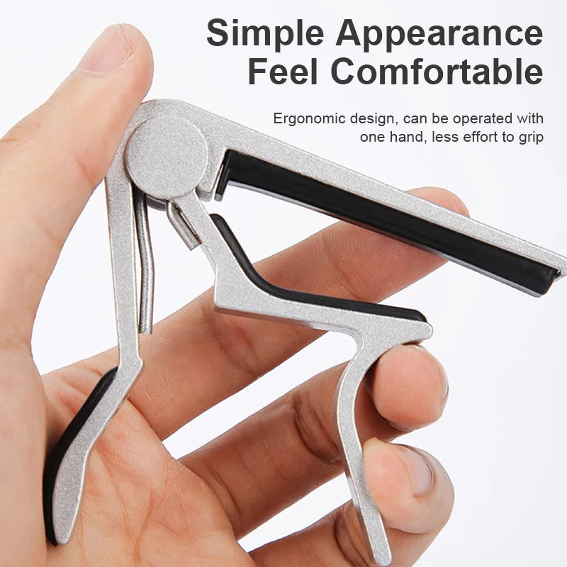 Capo (English: Capo) is used to adjust the tone of the guitar, is a commonly used auxiliary tool in folk guitar playing, can be suppressed during the transposition to make the tune increase the corresponding interval, so that it is in harmony with the singer’s voice, and Playing with the original fingering method greatly reduces the difficulty of transposition. Now, it is widely used in the performance of flamenco guitar, classical guitar and folk guitar. When used for solo tracks, the capo is often placed between the first to fourth fret, with the highest frequency being placed in the second fret. The use above the fourth fret is basically only found in accompaniment.