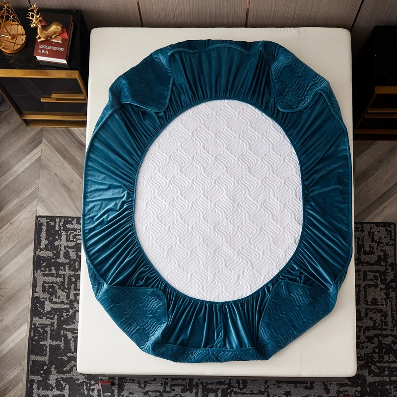 Crystal Velvet Thicken Quilted Mattress Cover Warm Soft Plush Queen King Quilted Bed Fitted Sheet Not Including Pillowcase