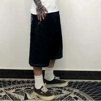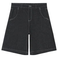 Hip Hop Pockets Embroidery Letter Print Jeans Shorts for Men Summer Retro Oversized Wide Leg Denim Knee Length Pants