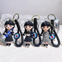 Horror Wednesday Addams Silicone Keychain Toy Thing Hand Home Decor Keychain Doll Schoolbag Pendant Halloween Toy Costume Props