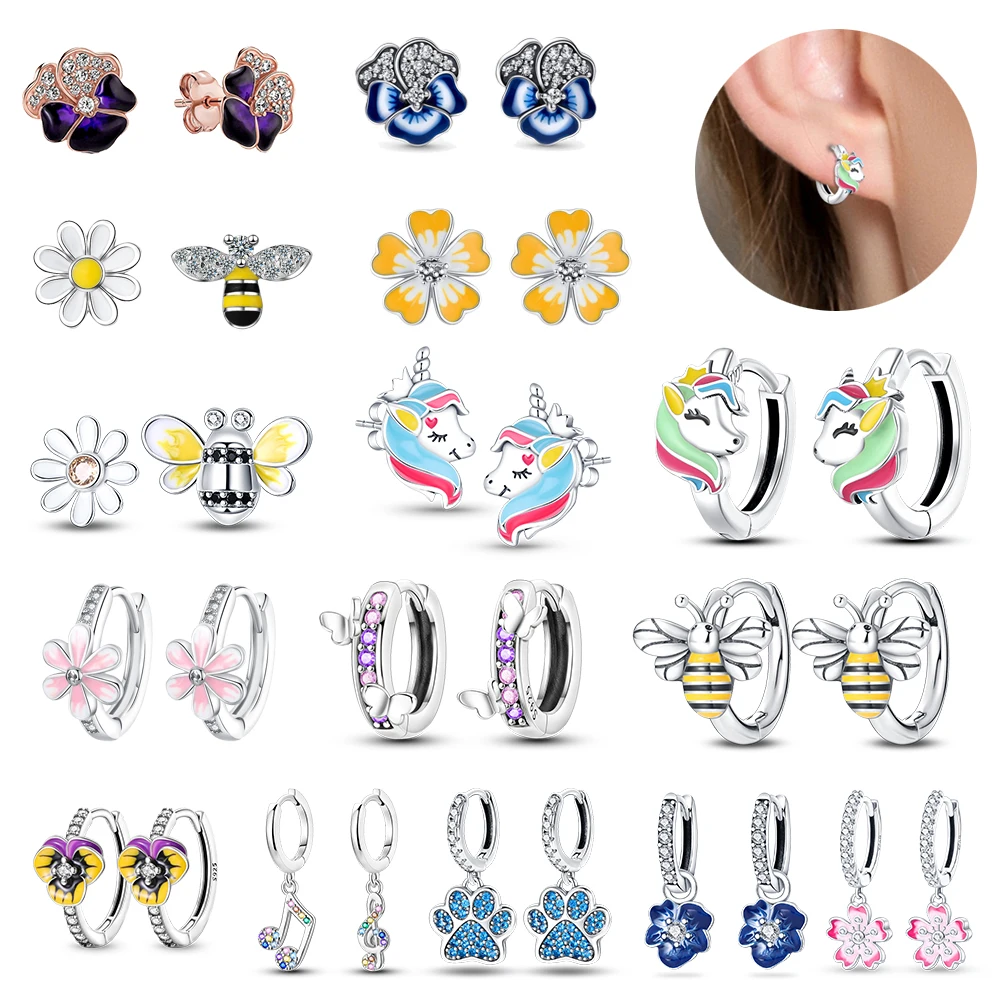 Hot Sale Bee Earrings For Girl Lovely Yellow Black Dancing Bee Happy S925 Hoop Earrings Birthday Gift Silver Jewelry
