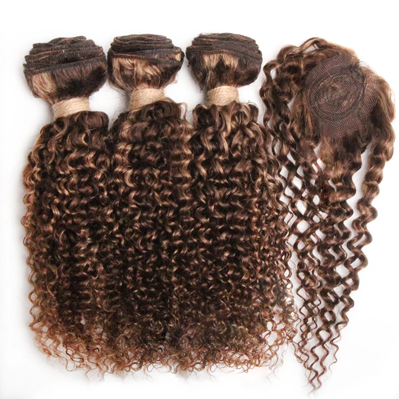 Indian Kinky Curly Hair Bundles 4pcs/Lot Curly Human Hair Bundles With Closure Hair Extensions 8-12 Inches