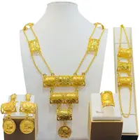 Dubai Saudi Arabia Trendy Gold Plated Pendant 4pcs Necklace Set Fashion Women Cubic Zirconia Jewelry Sets Bridal Accessories