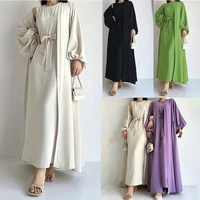 kebaya Ramadan Elegant Solid Two-piece Set Dress, Open Front Coverup and Tie Waist Abayas Outfits, Islam Women’s Clothing