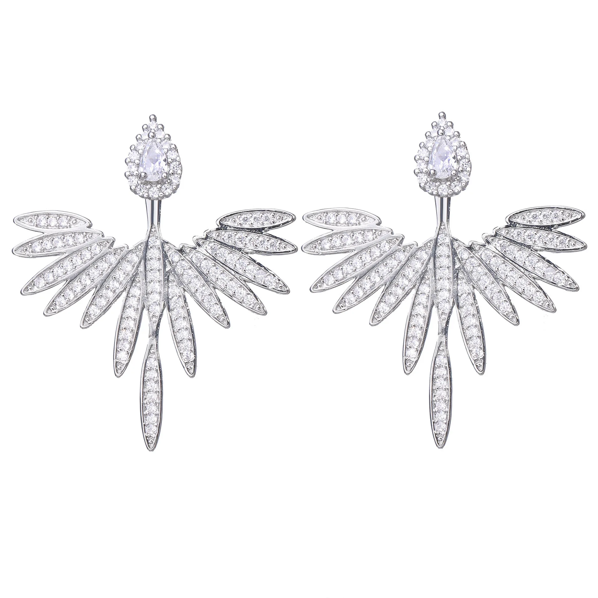 Koeran Fashion Luxury Crystal Wing Symmetrical Earrings Exquisite Silver Color Party Jewelry for Women