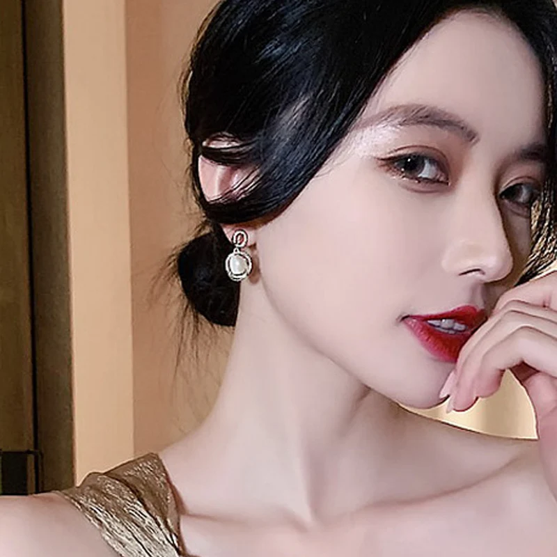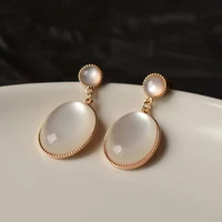 Korea New White Moonlight Cat’s Eye Stone Earrings For Women Small Fresh Geometric Eardrop Elegant Ladies Temperament Jewelry