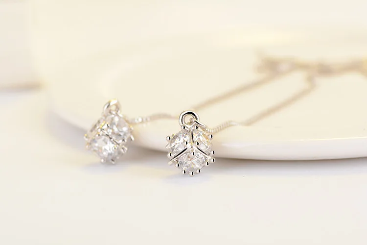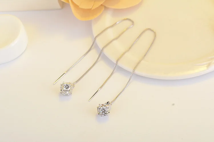 Korean Crystal Square Cube Long Tassel Exquisite 925 stamp silver color Jewelry Female Temperament Dangle Earrings