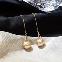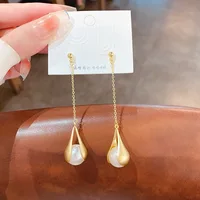 - Name : Korean Fashion Long Dangle Imitation Pearl Drop Earrings for Women Wedding Party Vintage Golden Color Plated Statement Jewelry