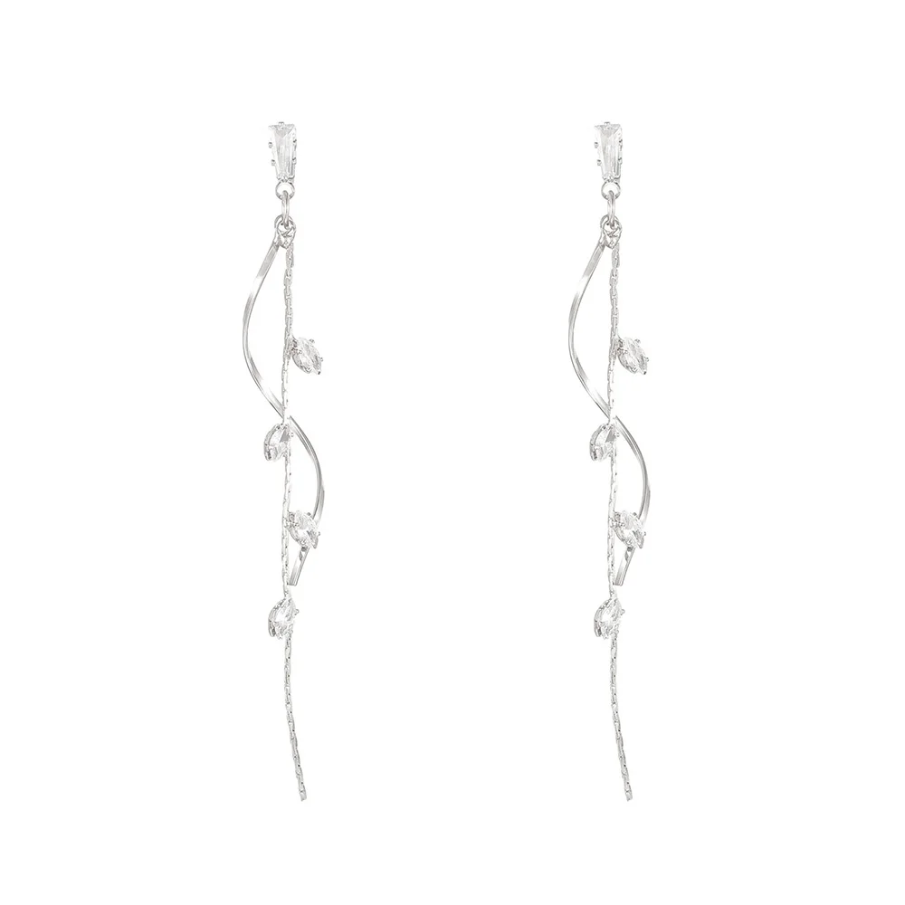 Korean Fashion Luxury Long Tassel Earrings For Women Ins Rotating Twisted Zircon Dangle Earrings Gold Color Jewelry Gift