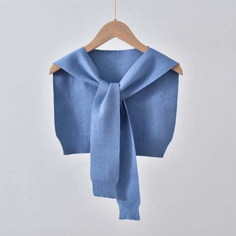 Korean Woolen Knit Warm Shawl Winter Female Blouse Shoulders Fake Collar Cape Knotted Scarf Solid Color Neck Guard Scarve O44