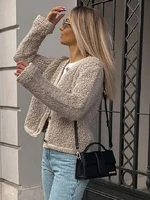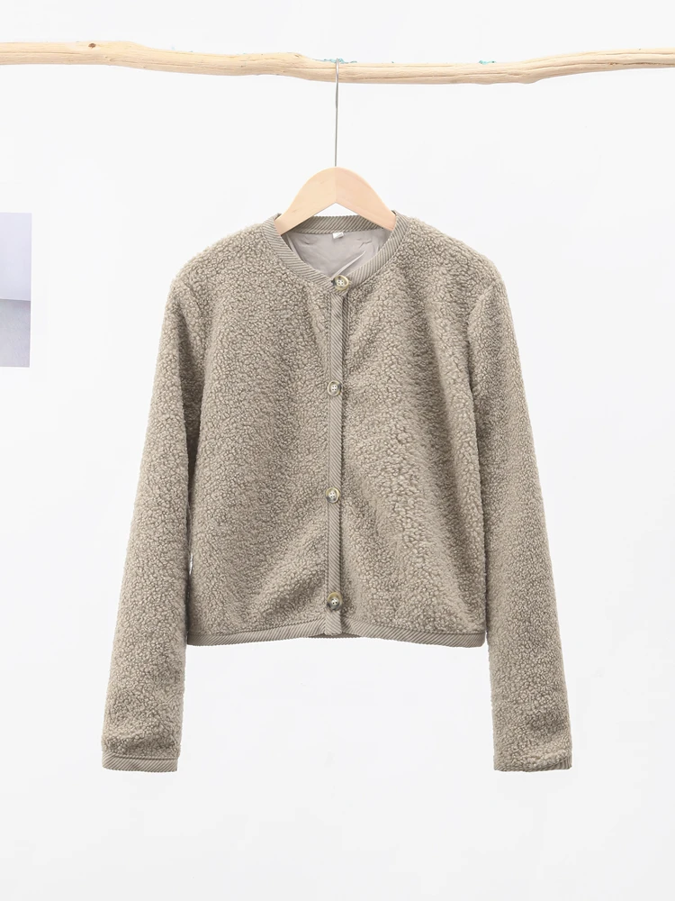 Lamb Wool Women Coat O-neck Long Sleeve Single Breasted Female Short Jacket, Autumn Winter Fashion, Loose Lady Outwear