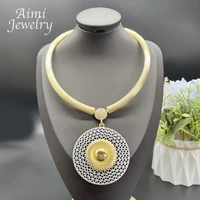 Large Round Pendant 18K Gold Plated Jewelry Set for Women Necklace Earrings Bracelet Ring African Bridal Wedding Party Gifts