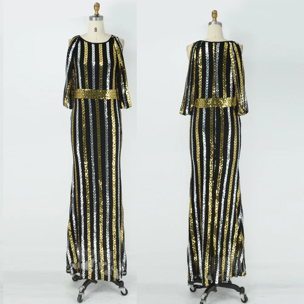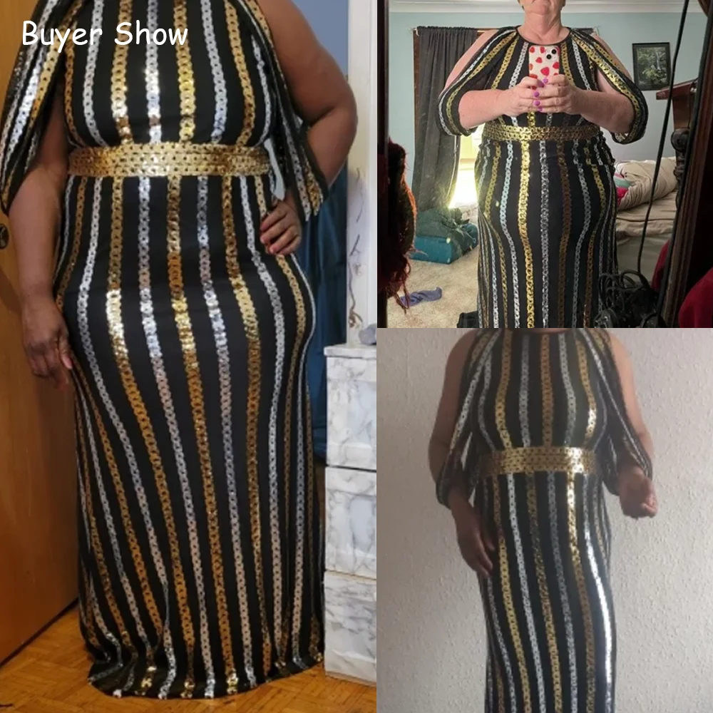 Large Size Evening Dresses Fashion Female Sequin Draped Sleeve Birthday Wedding Party Dresses Plus Size Women Long Elegant Dress