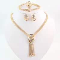 Trendy Gold Color Jewelry Set For Women Tassel Long Chain Bridal Long Necklace Bracelet Earring Ring Wedding Sets