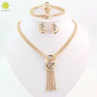 Latest Fashion African Beads Jewelry Sets Wedding Costume Women Party Gold Color Crystal Necklace Bangle Earring Ring