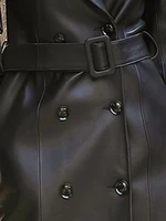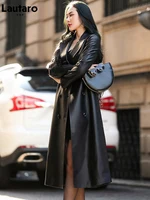 Lautaro Autumn Black Waterproof Pu Leather Trench Coat for Women Long Sleeve Belt Double Breasted Autumn Designer Fashion