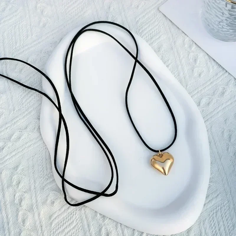 Layered Lace Up Rope Chain with Heart Pendant Necklace for Women Trendy Elegant Choker Necklace, Fashion Jewelry Accessories