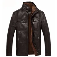 Leather Jacket Men Winter Leather Jacket Thicken Warm Coat Male Casual Stand Collar Thermal Leather Coats Clothing 5XL