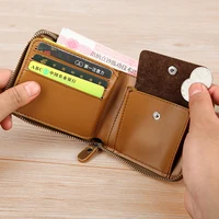 Genuine Leather RFID Vintage Wallet Men With Coin Pocket Short Wallets Small Zipper Wallet With Card Holders Man Purse