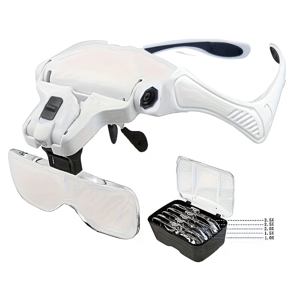 LED Head Magnifier 5 Interchangeable Lenses 1.0X To 3.5X Lighted Magnifying Glasses Battery Powered Head Mount Magnifying Glass