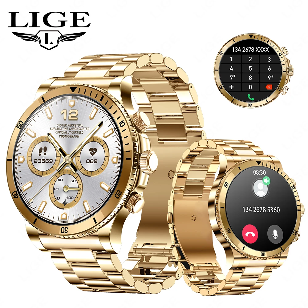 LIGE AI Voice Control Smart Watch Men Outdoor Sport Fitness Bracelet Bluetooth Call Heart Rate Blood Pressure Tracker Smartwatch