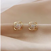Light Luxury Zircon Stud Earrings Simple Cross Hollow Geometric Earrings Wedding Party Exquisite Ear Jewellery Women Gifts