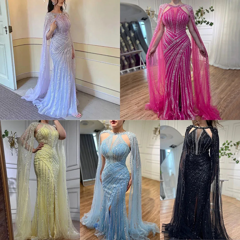Be the first to review “Lilac Cape Sleeves Mermaid Luxury Beaded Evening Dresses Open Split Wedding Party Gowns for Women” Cancel reply