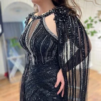 Lilac Cape Sleeves Mermaid Luxury Beaded Evening Dresses Open Split Wedding Party Gowns for Women