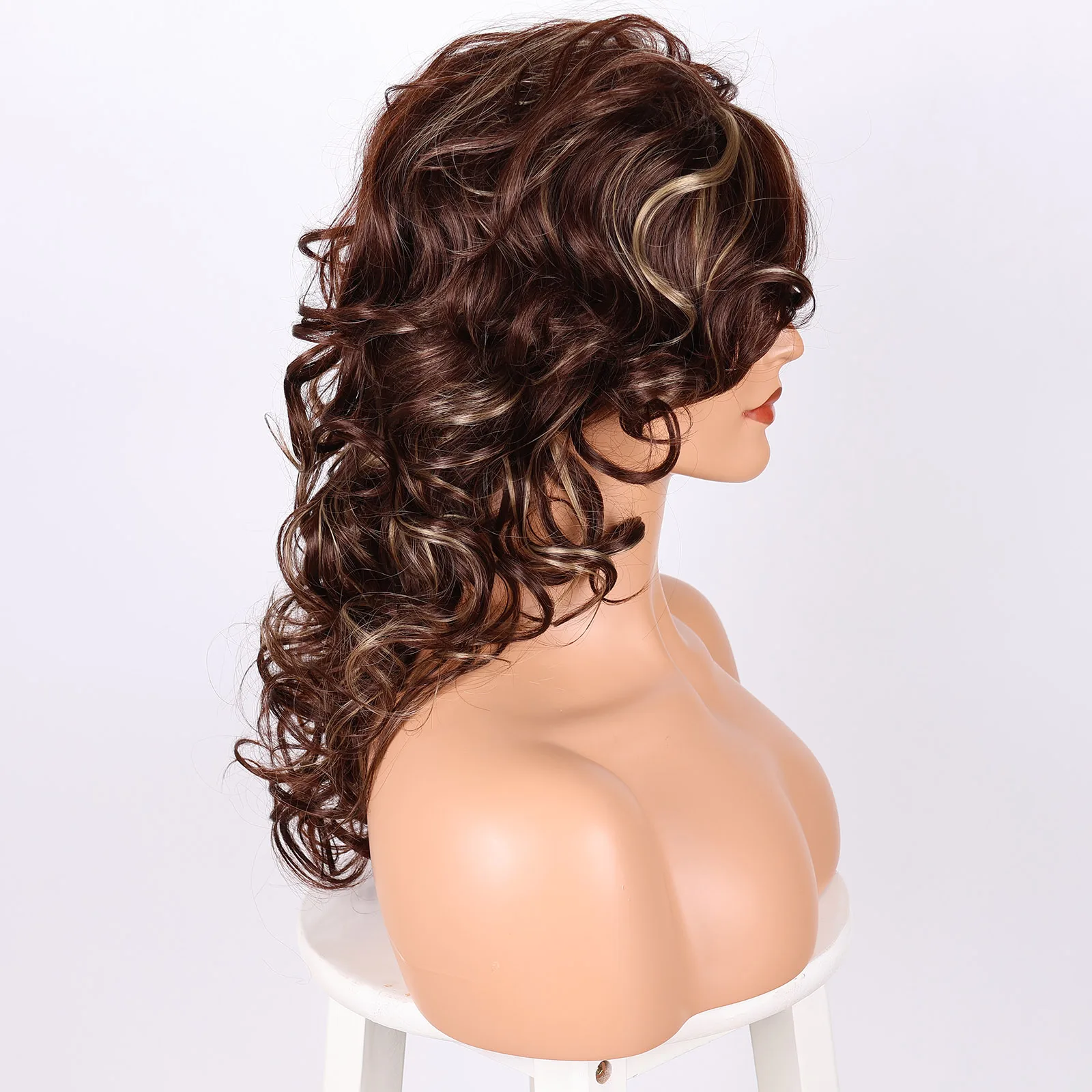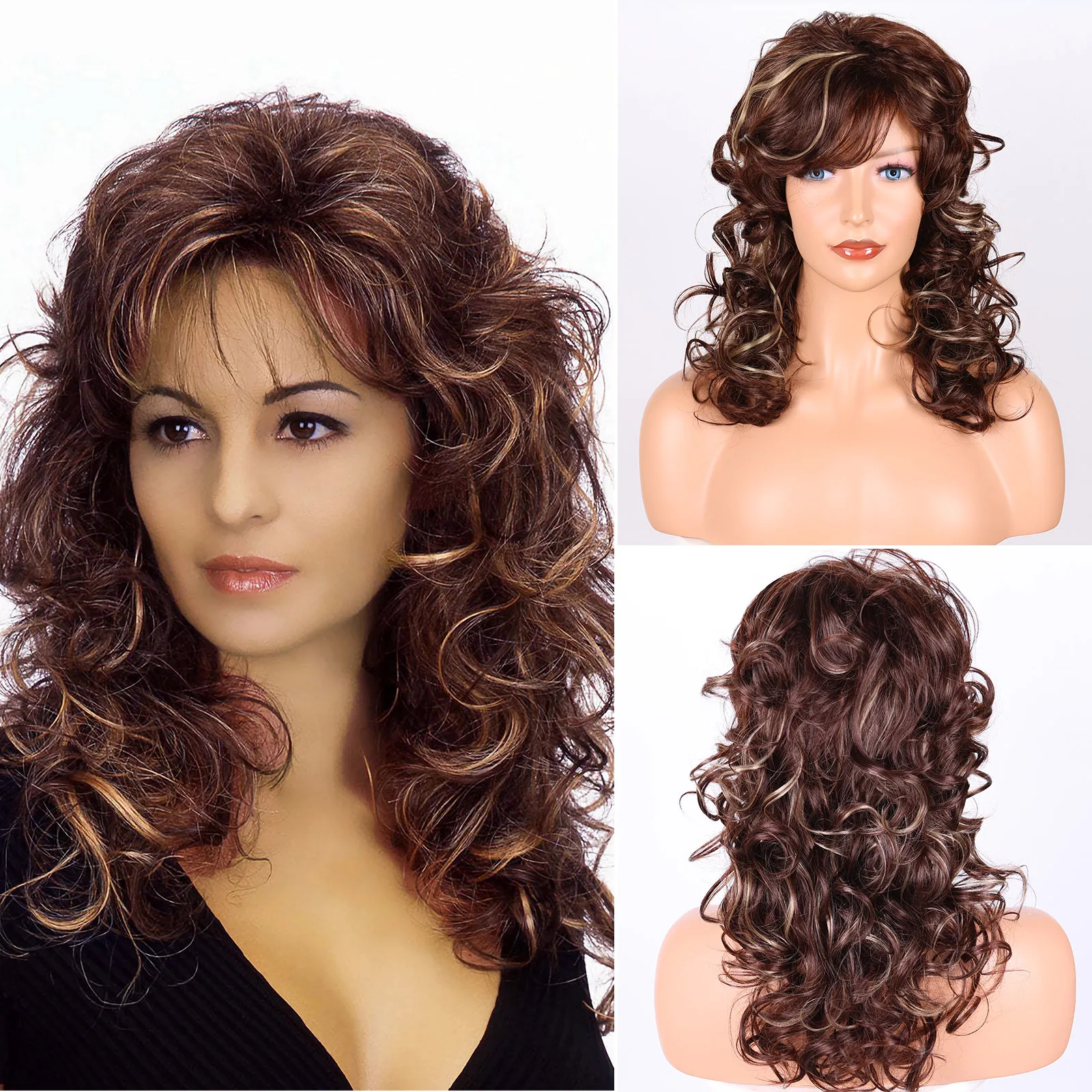 Long Brown Curly Wig Cosplay Anime Synthetic Water Wave Wigs with Bang for Women Hair
