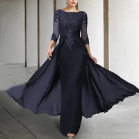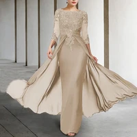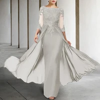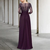 Long Elegant Mother of the Bride Dresses Chiffon Appliques Jewel Neck Floor Length Evening Wedding Party Skirt for Women