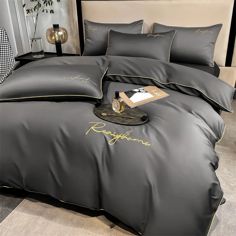Luxury 60’s Long Pile 100% Cotton Duvet Cover Set Embroidered Fall Winter Quilt Cover Solid Egyptian Cotton 2pcs pillowcases