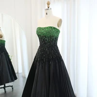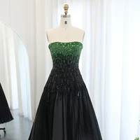 Luxury Beaded Black Green Strapless Dubai Evening Dress for Women Wedding Elegant Midi Formal Party Gowns