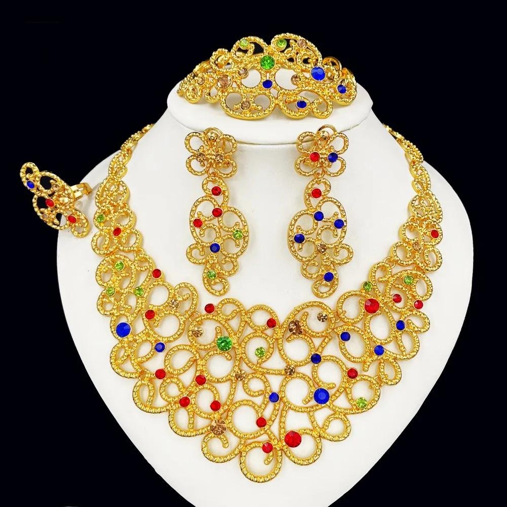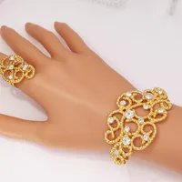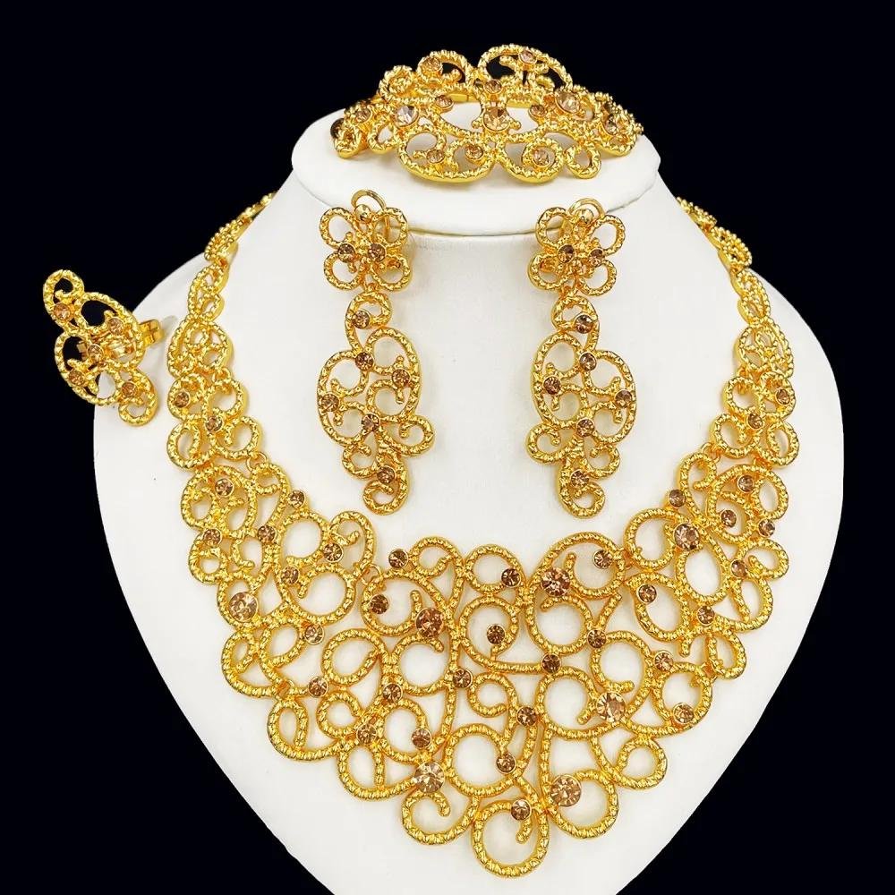 Luxury Big Jewelry Set Shiny Zircon Large Necklace Bracelet Long Earring Ring For African Nigeria Wedding Gift
