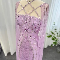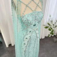 Luxury Dubai Aqua Lilac Arabic Mermaid Evening Dress with Cape Sleeves Criss Cross Women Wedding Party Gowns