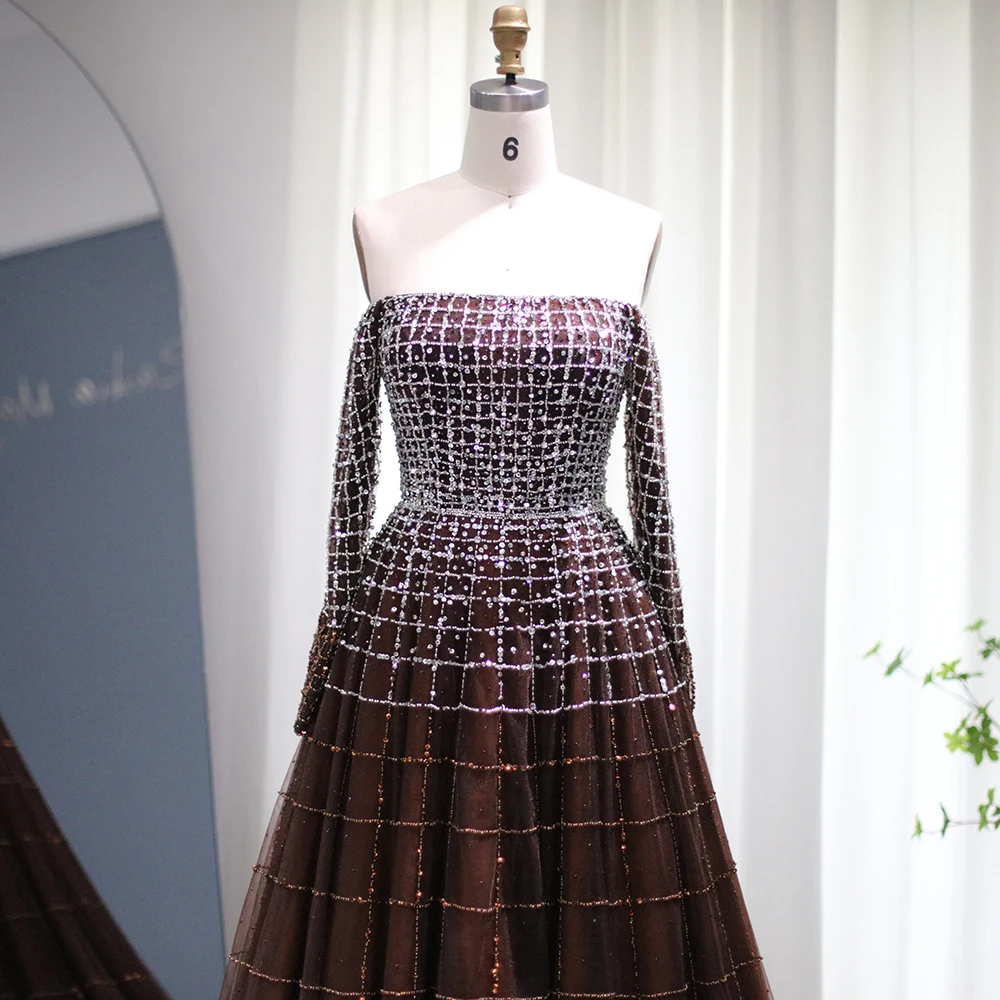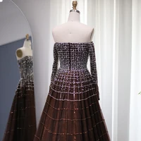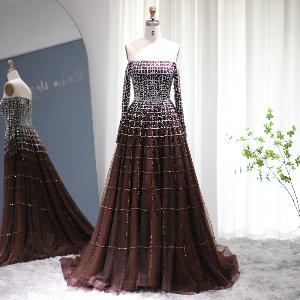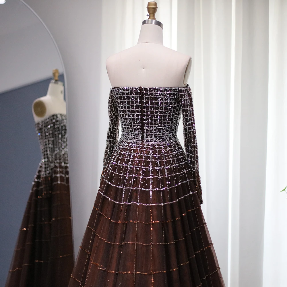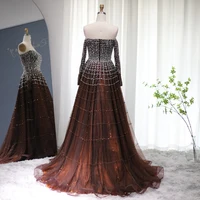 Luxury Dubai Brown Off Shoulder Evening Dresses Long Sleeve Elegant Arabic Women Wedding Party Dress Prom Gown