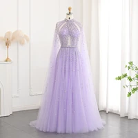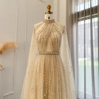 Luxury Dubai Evening Dress with Cape Sleeve Elegant Long Arabic Formal Dresses for Women Wedding Party