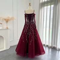 Elegant Long Sleeve Arabic Evening Dress V-Neck Dubai Luxury Crystal Muslim Plus Size Women Wedding Party Gown