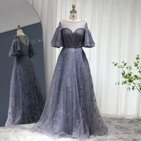 Arabic Mermaid Grey Nude Evening Dresses Gowns Feather Beaded Elegant For Women Wedding Party