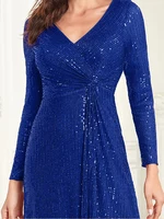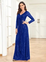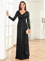 Luxury Long Sleeve V-Neck Evening Dress Women Wedding Party Sequins for Female Guests Red Prom Cocktail Dresses